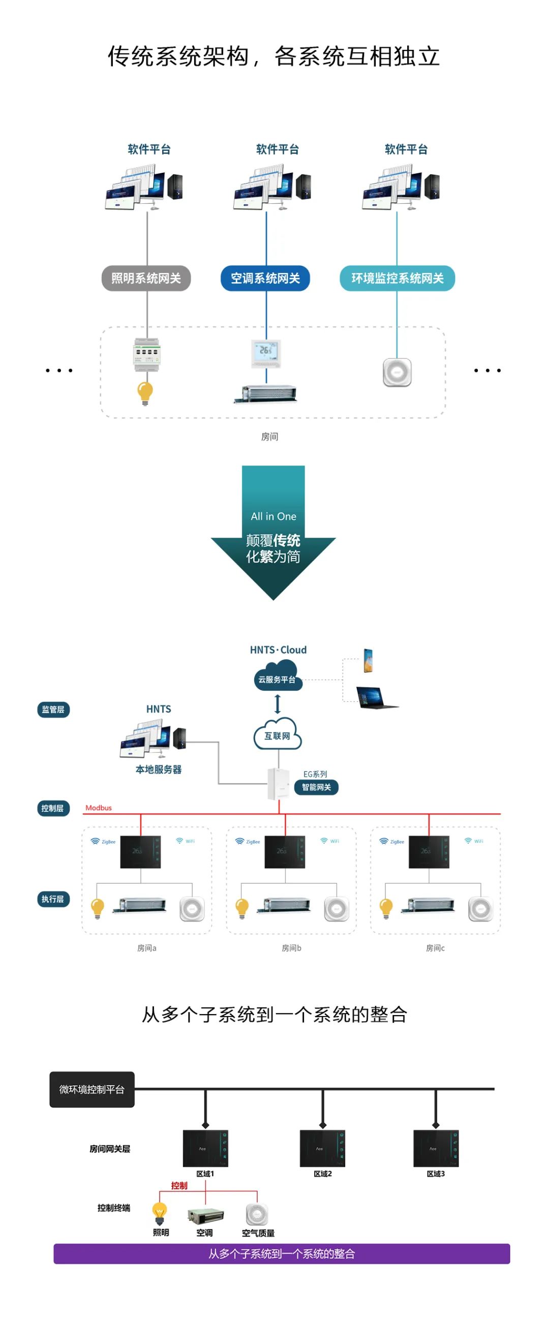 傳統(tǒng)智能化采用多系統(tǒng)方式,多個(gè)系統(tǒng)、多個(gè)軟件、多個(gè)總線。在前期施工成本上,多個(gè)系統(tǒng)需要多個(gè)網(wǎng)關(guān)、多條通訊總線以及需要控制線引到弱電設(shè)備間,費(fèi)時(shí)費(fèi)力,成本很高。