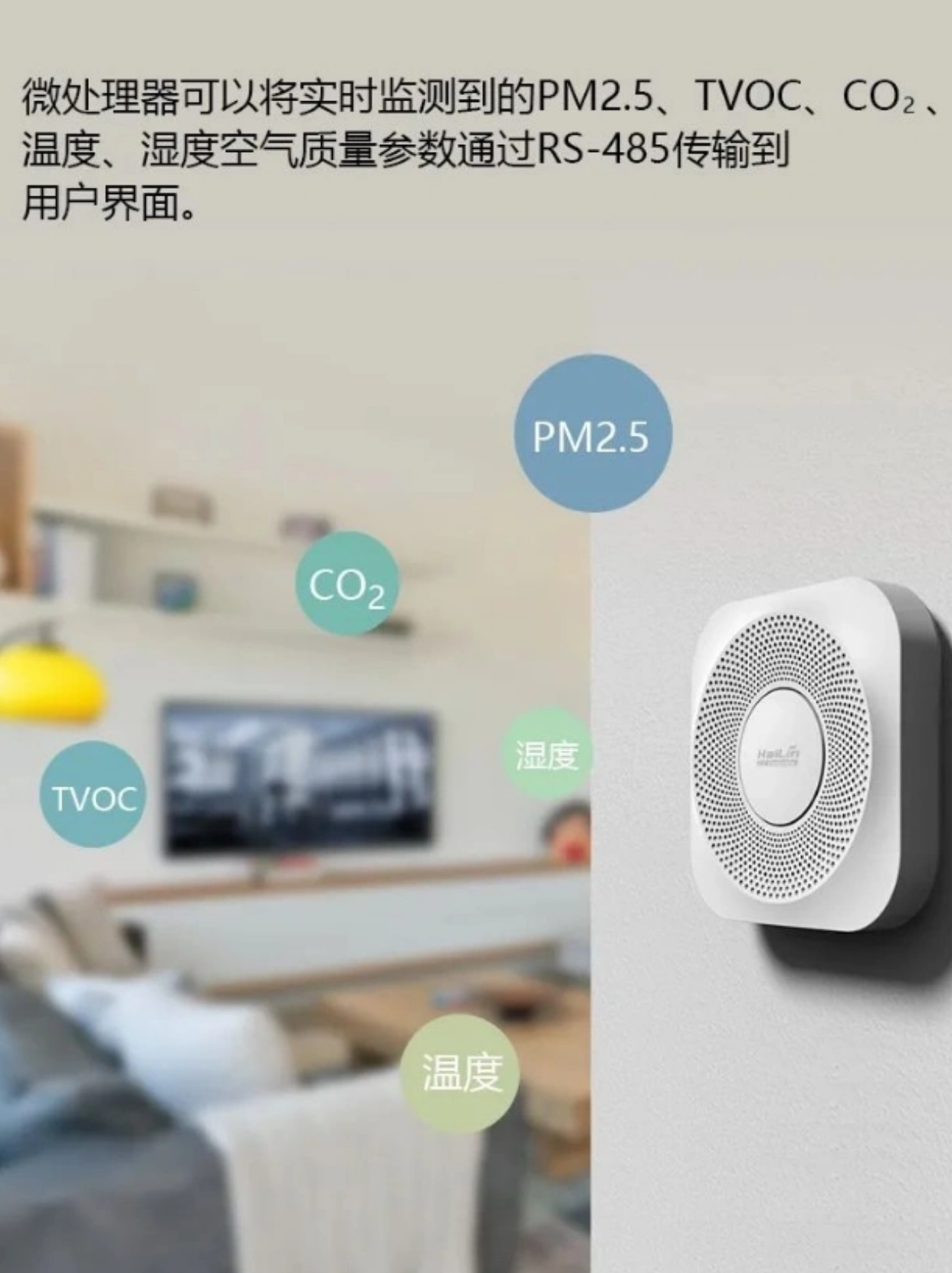 海林Ate空氣質量傳感器,可實時監測PM2.5,TVOC,CO?以及溫濕度等室內空氣質量參數,在呼吸道疾病多發的春季,給您最全面的保障。
