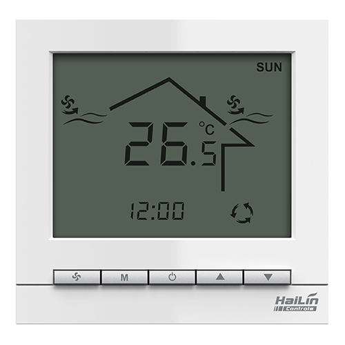 新風控制器HL2023X主要用于控制新風換氣機,設備包含兩臺風機,分別為送風機和排風機。通過控制器面板上的按鍵可以控制新風換氣機的啟停、速度的切換,手動/自動轉換,以及普通換氣與能量回收兩種工作模式的切換。采用靈敏的熱敏電阻作為感溫元件檢測室內溫度。