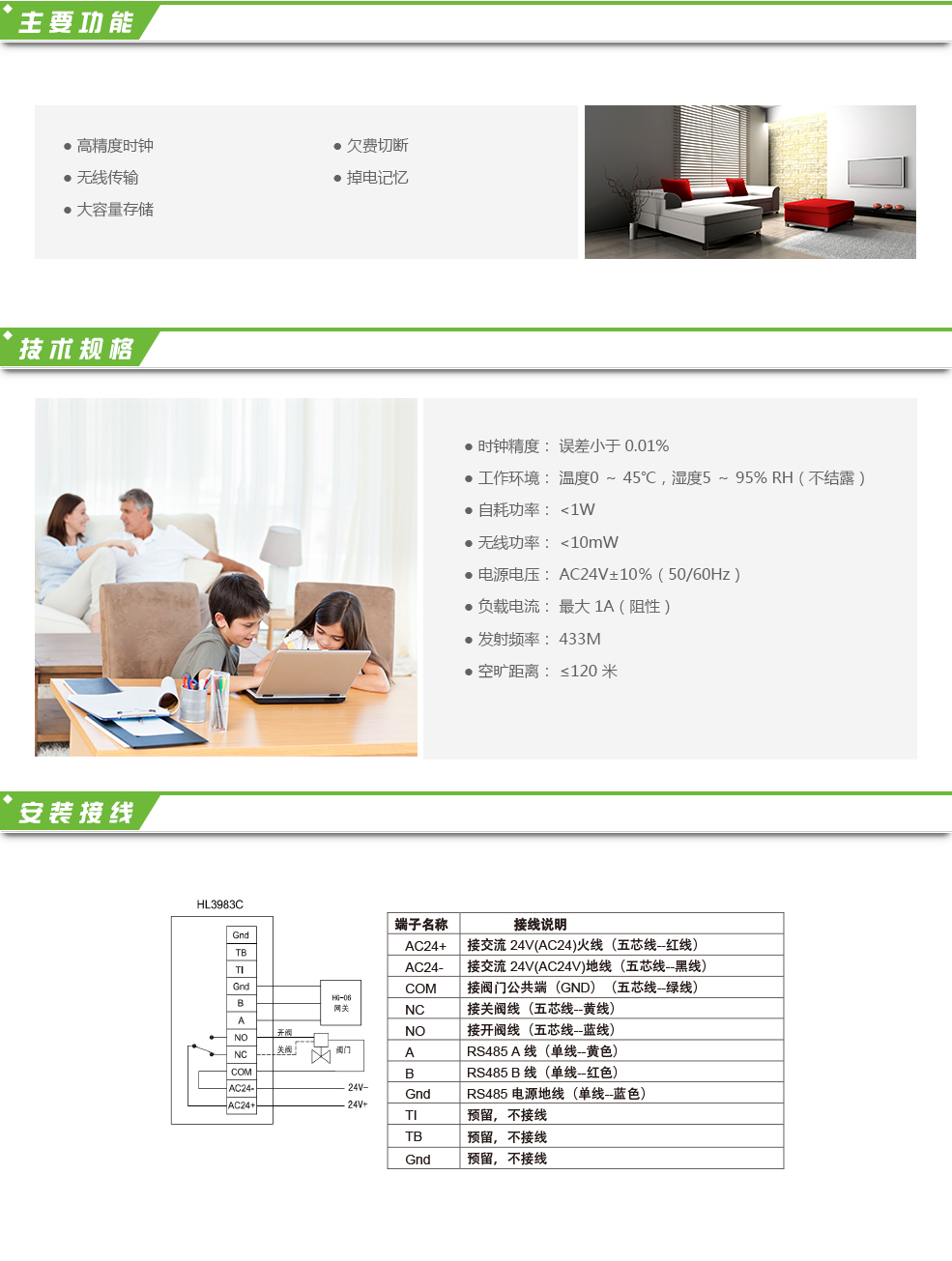 計量控制器HL3983C是應用于集中供熱采暖系統的智能控制器。對戶內采用無線通訊方式與室內溫控器進行通訊,RS485通訊方式與網關互聯。可以精確計量閥門開啟時間,對室內溫度及設定溫度等參數精確計量和存儲。現場安裝極為簡單方便。 可與無線溫控器HL3983S或無線溫控器HL3963-S2配套使用。