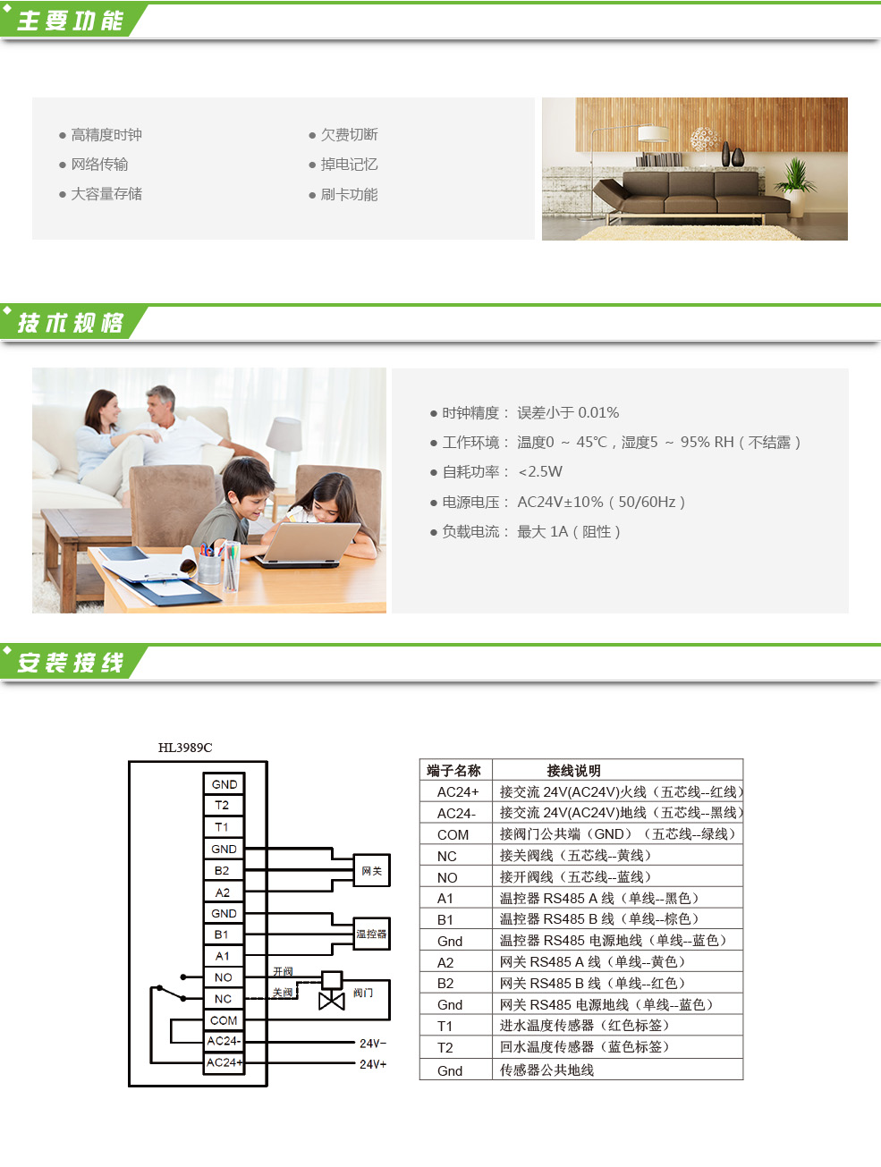刷卡計量控制器HL3989C是應用于集中供熱采暖系統的智能控制器。采用RS485與室內溫控器進行通訊,RS485通訊方式與網關互聯。可以精確計量閥門開啟時間,對室內溫度及設定溫度等參數精確計量和存儲?,F場安裝極為簡單方便。 可與溫控器HL3931S配套使用。