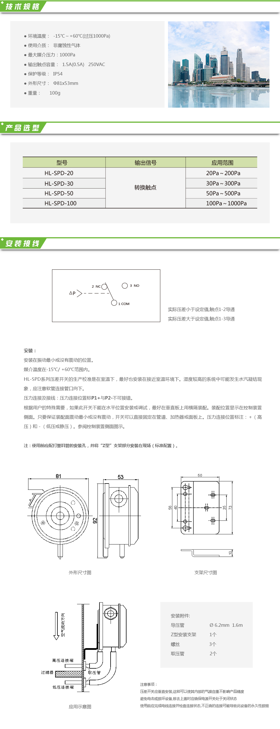 HL-SPD系列壓差開關可用于感知管道中的非腐蝕性氣體的壓力差、真空、過壓和氣流差等參數(shù),常規(guī)應用包括:監(jiān)測過濾網(wǎng)阻塞報警裝置、通風管道中氣體監(jiān)測、控制可變氣體容積系統(tǒng)中的最大氣流、燃燒爐中氣體控制。
