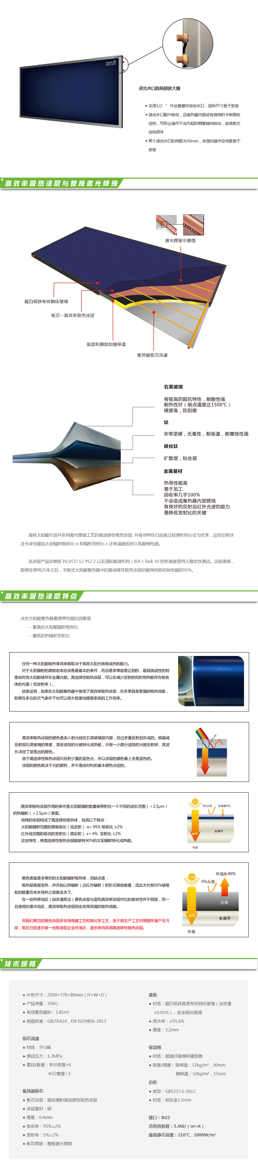 陽臺式平板型太陽能集熱器適用于陽臺式太陽能熱水系統。